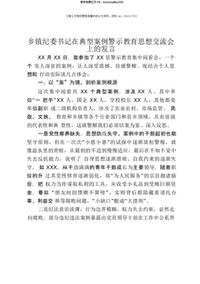 【七哥公文】2025年:【七哥公文】乡镇纪委书记在典型案例警示教育思想交流会上的发言+更多免费公文+VX:QiGeGongWen2024+更多免费公文+VX:QiGeGongWen2024