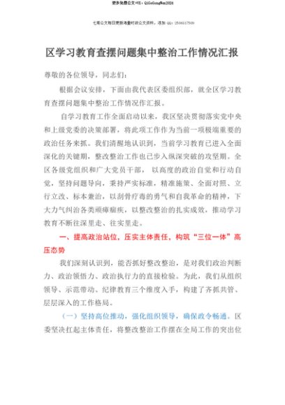 【七哥公文】2025年:【七哥公文】区贯彻中央八项规定精神学习教育查摆问题集中整治工作情况汇报+更多免费公文+VX:QiGeGongWen2024+更多免费公文+VX:QiGeGongWen2024