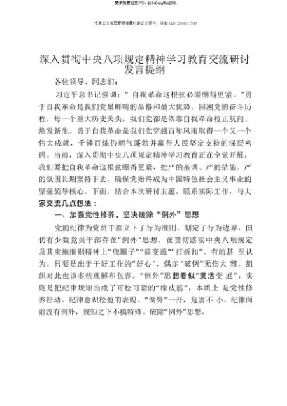 【七哥公文】2025年:【七哥公文】深入贯彻中央八项规定精神学习教育交流研讨发言提纲+更多免费公文+VX:QiGeGongWen2024+更多免费公文+VX:QiGeGongWen2024
