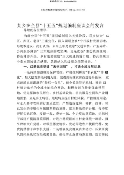 【七哥公文】2025年:【七哥公文】某乡在全县“十五五”规划编制座谈会的发言+更多免费公文+VX:QiGeGongWen2024+更多免费公文+VX:QiGeGongWen2024