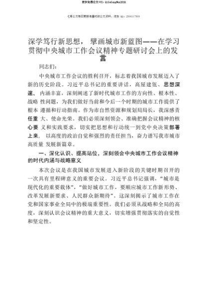 【七哥公文】2025年:【七哥公文】深学笃行新思想,擘画城市新蓝图——在学习贯彻中央城市工作会议精神专题研讨会上的发言+更多免费公文+VX:QiGeGongWen2024+更多免费公文+VX:QiGeGongWen2024