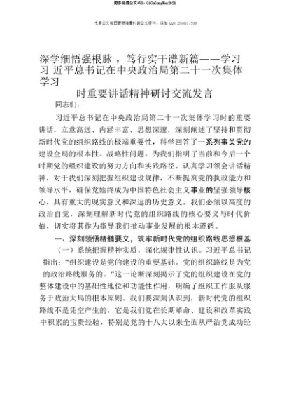 【七哥公文】2025年:【七哥公文】深学细悟强根脉,笃行实干谱新篇——学习习近平总书记在中央政治局第二十一次集体学习时重要讲话精神研讨交流发言+更多免费公文+VX:QiGeGongWen2024+更多免费公文+VX:QiGeGongWen2024