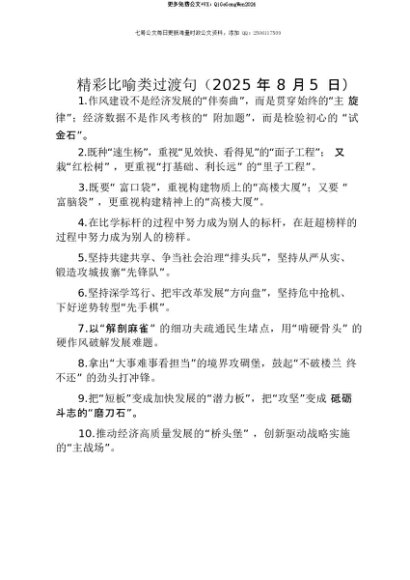 【七哥公文】2025年:【七哥公文】精彩比喻类过渡句(2025年8月5日)+更多免费公文+VX:QiGeGongWen2024+更多免费公文+VX:QiGeGongWen2024