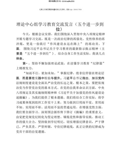 【七哥公文】2025年:【七哥公文】理论中心组贯彻中央八项规定精神学习教育交流发言(五个进一步到位)+更多免费公文+VX:QiGeGongWen2024+更多免费公文+VX:QiGeGongWen2024