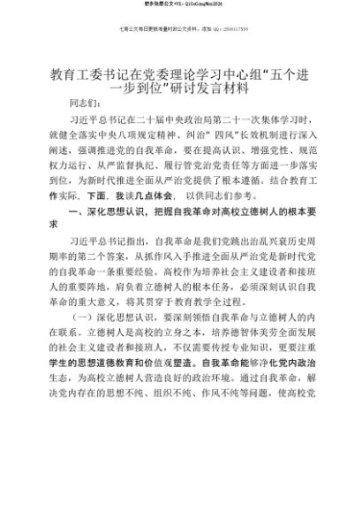 【七哥公文】2025年:【七哥公文】教育工委书记在党委理论学习中心组“五个进一步到位”研讨发言材料+更多免费公文+VX:QiGeGongWen2024+更多免费公文+VX:QiGeGongWen2024
