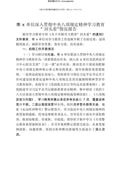 【七哥公文】2025年:【七哥公文】市x单位深入贯彻中央八项规定精神学习教育“回头看”情况报告+更多免费公文+VX:QiGeGongWen2024+更多免费公文+VX:QiGeGongWen2024
