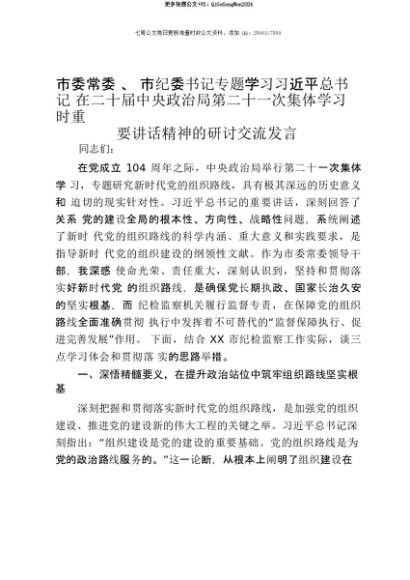 【七哥公文】2025年:【七哥公文】市委常委、市纪委书记专题学习习近平总书记在二十届中央政治局第二十一次集体学习时重要讲话精神的研讨交流发言+更多免费公文+VX:QiGeGongWen2024+更多免费公文+VX:QiGeGongWen2024