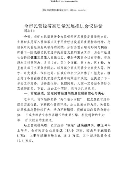 【七哥公文】2025年:【七哥公文】全市民营经济高质量发展推进会议讲话+更多免费公文+VX:QiGeGongWen2024+更多免费公文+VX:QiGeGongWen2024
