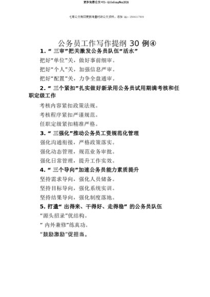 【七哥公文】2025年:【七哥公文】公务员工作写作提纲30例④+更多免费公文+VX:QiGeGongWen2024+更多免费公文+VX:QiGeGongWen2024