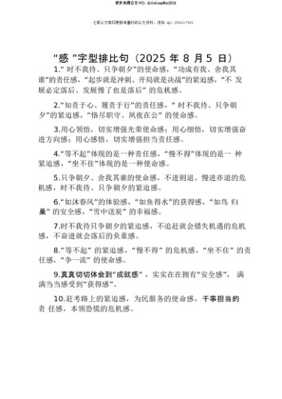 【七哥公文】2025年:【七哥公文】“感”字型排比句(2025年8月5日)+更多免费公文+VX:QiGeGongWen2024+更多免费公文+VX:QiGeGongWen2024