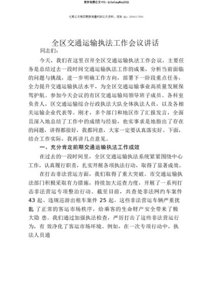 【七哥公文】2025年:【七哥公文】全区交通运输执法工作会议讲话+更多免费公文+VX:QiGeGongWen2024+更多免费公文+VX:QiGeGongWen2024