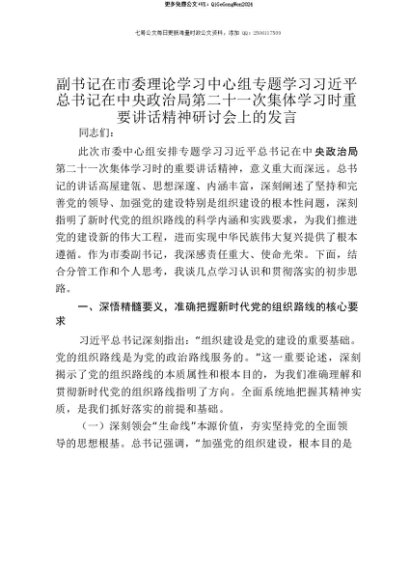 【七哥公文】2025年:【七哥公文】副书记在市委理论学习中心组专题学习习近平总书记在中央政治局第二十一次集体学习时重要讲话精神研讨会上的发言+更多免费公文+VX:QiGeGongWen2024+更多免费公文+VX:QiGeGongWen2024