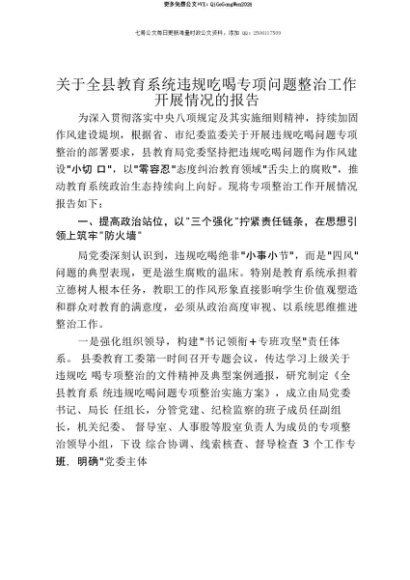 【七哥公文】2025年:【七哥公文】关于全县教育系统违规吃喝专项问题整治工作开展情况的报告+更多免费公文+VX:QiGeGongWen2024+更多免费公文+VX:QiGeGongWen2024