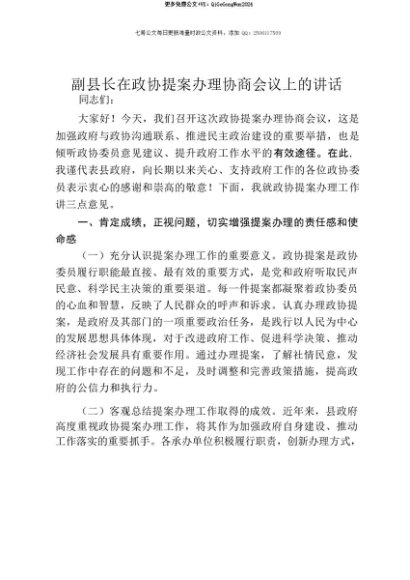【七哥公文】2025年:【七哥公文】副县长在政协提案办理协商会议上的讲话+更多免费公文+VX:QiGeGongWen2024+更多免费公文+VX:QiGeGongWen2024