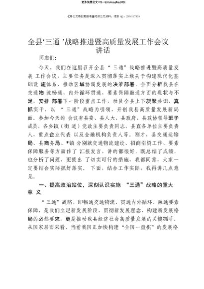 【七哥公文】2025年:【七哥公文】全县‘三通’战略推进暨高质量发展工作会议讲话+更多免费公文+VX:QiGeGongWen2024+更多免费公文+VX:QiGeGongWen2024
