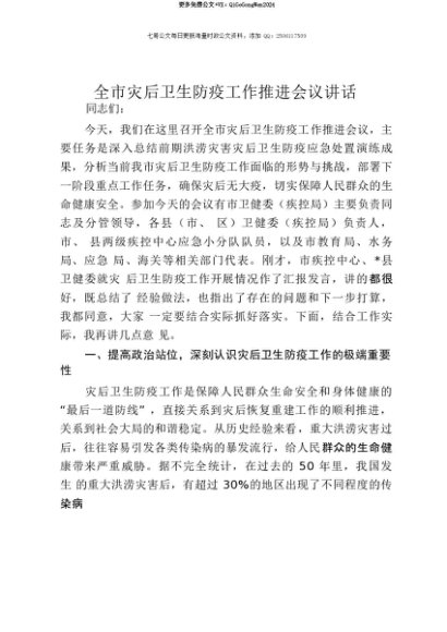 【七哥公文】2025年:【七哥公文】全市灾后卫生防疫工作推进会议讲话+更多免费公文+VX:QiGeGongWen2024+更多免费公文+VX:QiGeGongWen2024