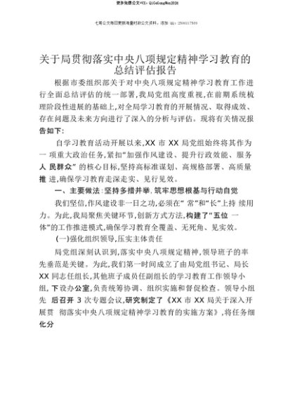 【七哥公文】2025年:【七哥公文】关于局贯彻落实中央八项规定精神学习教育的总结评估报告+更多免费公文+VX:QiGeGongWen2024+更多免费公文+VX:QiGeGongWen2024