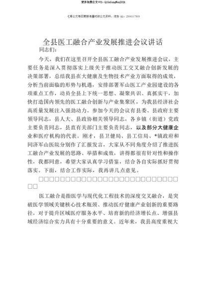 【七哥公文】2025年:【七哥公文】全县医工融合产业发展推进会议讲话+更多免费公文+VX:QiGeGongWen2024+更多免费公文+VX:QiGeGongWen2024