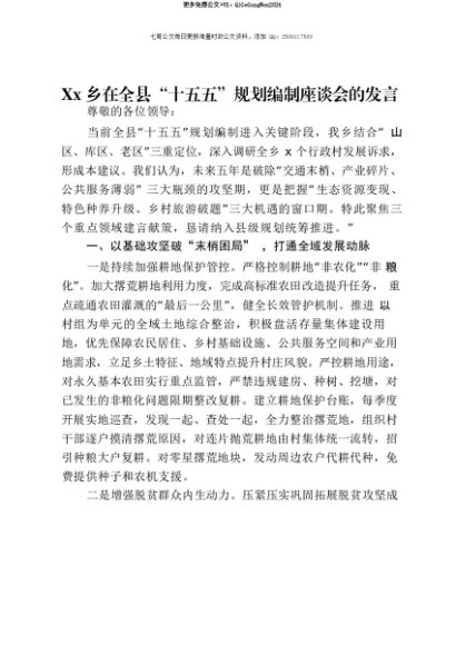 【七哥公文】2025年:【七哥公文】Xx乡在全县“十五五”规划编制座谈会的发言+更多免费公文+VX:QiGeGongWen2024+更多免费公文+VX:QiGeGongWen2024