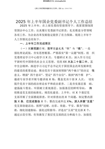 【七哥公文】2025年:【七哥公文】2025年上半年国企党委副书记个人工作总结+更多免费公文+VX:QiGeGongWen2024+更多免费公文+VX:QiGeGongWen2024