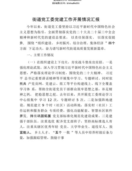 【七哥公文】2025年:【七哥公文】街道X工委X建工作开展情况汇报+更多免费公文+VX:QiGeGongWen2024+更多免费公文+VX:QiGeGongWen2024