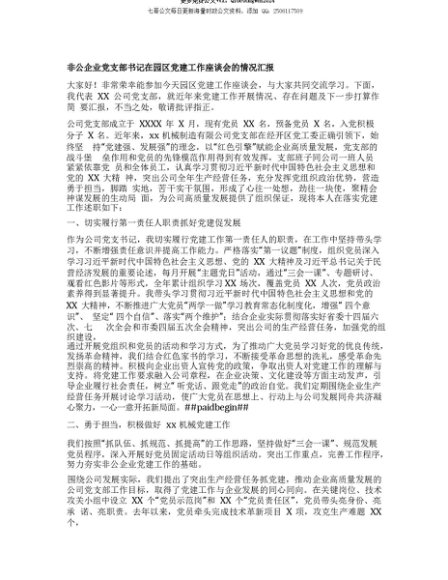 【七哥公文】2025年:【七哥公文】非公企业X支部书记在园区X建工作座谈会的情况汇报+更多免费公文+VX:QiGeGongWen2024+更多免费公文+VX:QiGeGongWen2024