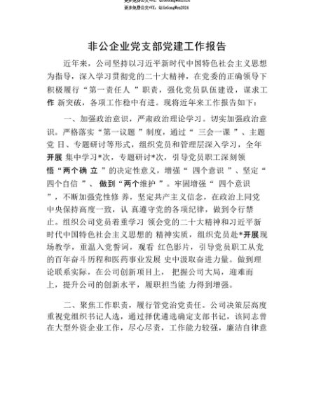 【七哥公文】2025年:【七哥公文】非公企业X支部X建工作报告+更多免费公文+VX:QiGeGongWen2024+更多免费公文+VX:QiGeGongWen2024