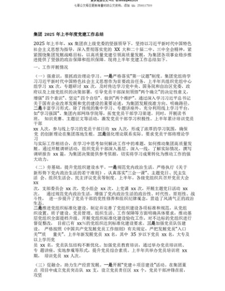 【七哥公文】2025年:【七哥公文】集团2025年上半年度X建工作总结+更多免费公文+VX:QiGeGongWen2024+更多免费公文+VX:QiGeGongWen2024
