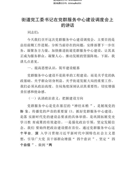 【七哥公文】2025年:【七哥公文】街道X工委书记在X群服务中心建设调度会上的讲话+更多免费公文+VX:QiGeGongWen2024+更多免费公文+VX:QiGeGongWen2024