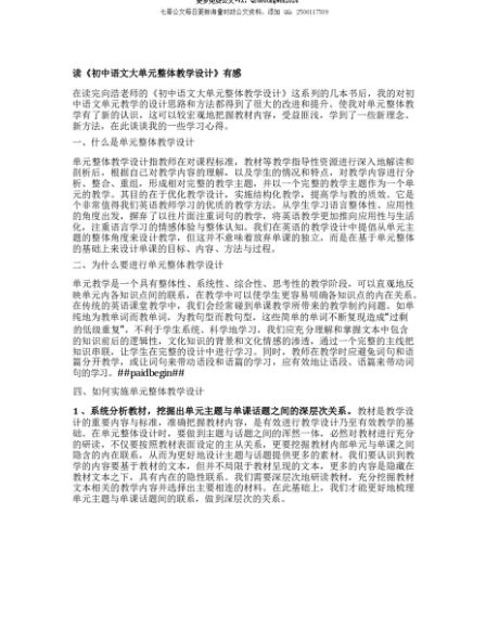 【七哥公文】2025年:【七哥公文】读《初中语文大单元整体教学设计》有感+更多免费公文+VX:QiGeGongWen2024+更多免费公文+VX:QiGeGongWen2024