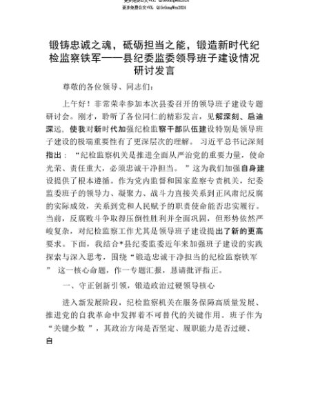 【七哥公文】2025年:【七哥公文】锻铸忠诚之魂,砥砺担当之能,锻造新时代纪检监察铁军——县纪委监委领导班子建设情况研讨发言+更多免费公文+VX:QiGeGongWen2024+更多免费公文+VX:QiGeGongWen2024