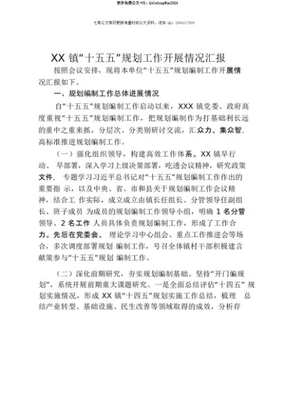 【七哥公文】2025年:【七哥公文】XX镇“十五五”规划工作开展情况汇报+更多免费公文+VX:QiGeGongWen2024+更多免费公文+VX:QiGeGongWen2024