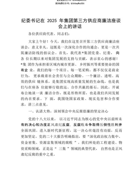 【七哥公文】2025年:【七哥公文】纪委书记在2025年集团第三方供应商廉洁座谈会上的讲话+更多免费公文+VX:QiGeGongWen2024+更多免费公文+VX:QiGeGongWen2024