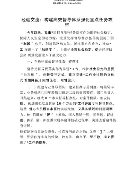 【七哥公文】2025年:【七哥公文】经验交流: 构建高效督导体系 强化重点任务攻坚+更多免费公文+VX:QiGeGongWen2024+更多免费公文+VX:QiGeGongWen2024