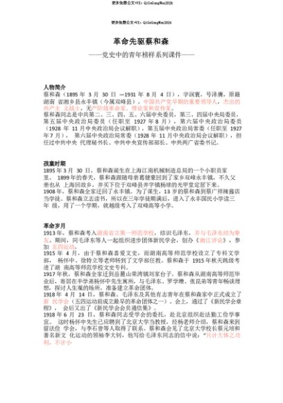 【七哥公文】2025年:【七哥公文】红色简洁革命先驱蔡和森PPT党史中的青年榜样系列课件(讲稿)+更多免费公文+VX:QiGeGongWen2024+更多免费公文+VX:QiGeGongWen2024