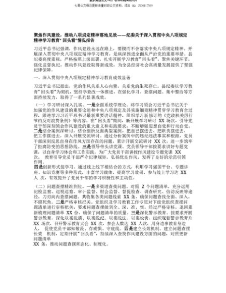 【七哥公文】2025年:【七哥公文】聚焦作风建设,推动BXGD精神落地见效——纪委关于深入贯彻中央BXGD精神学习教育“回头看”情况报告+更多免费公文+VX:QiGeGongWen2024+更多免费公文+VX:QiGeGongWen2024