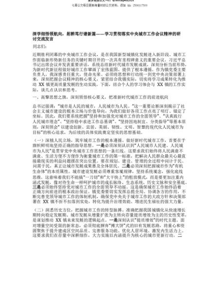 【七哥公文】2025年:【七哥公文】深学细悟领航向,躬耕笃行谱新篇——学习贯彻落实中央城市工作会议精神的研讨交流发言+更多免费公文+VX:QiGeGongWen2024+更多免费公文+VX:QiGeGongWen2024