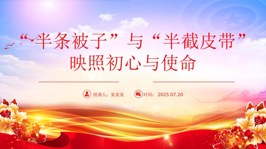 【七哥公文】2025年:【七哥公文】简洁大气半条被子与半截皮带 映照初心与使命PPT长征红色故事课件+更多免费公文+VX:QiGeGongWen2024+更多免费公文+VX:QiGeGongWen2024