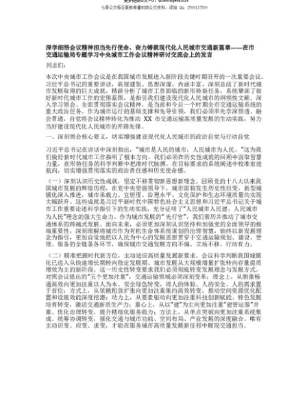 【七哥公文】2025年:【七哥公文】深学细悟会议精神担当先行使命,奋力铸就现代化人民城市交通新篇章——在市交通运输局专题学习中央城市工作会议精神研讨交流会上的发言+更多免费公文+VX:QiGeGongWen2024+更多免费公文+VX:QiGeGongWen2024