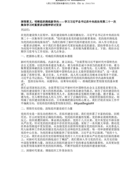【七哥公文】2025年:【七哥公文】深悟要义,明晰组织路线新导向——学习习近平总书记在中央ZZ局第二十一次集体学习时重要讲话精神研讨发言+更多免费公文+VX:QiGeGongWen2024+更多免费公文+VX:QiGeGongWen2024