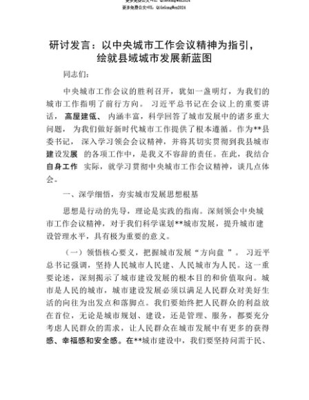 【七哥公文】2025年:【七哥公文】研讨发言:以中央城市工作会议精神为指引,绘就县域城市发展新蓝图+更多免费公文+VX:QiGeGongWen2024+更多免费公文+VX:QiGeGongWen2024