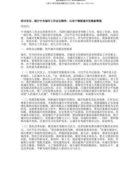【七哥公文】2025年:【七哥公文】研讨发言:践行中央城市工作会议精神,以实干铸就城市发展新辉煌+更多免费公文+VX:QiGeGongWen2024+更多免费公文+VX:QiGeGongWen2024