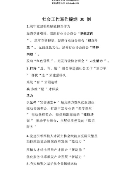 【七哥公文】2025年:【七哥公文】社会工作写作提纲30例+更多免费公文+VX:QiGeGongWen2024+更多免费公文+VX:QiGeGongWen2024