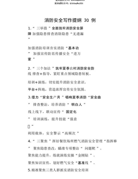 【七哥公文】2025年:【七哥公文】消防安全写作提纲30例+更多免费公文+VX:QiGeGongWen2024+更多免费公文+VX:QiGeGongWen2024
