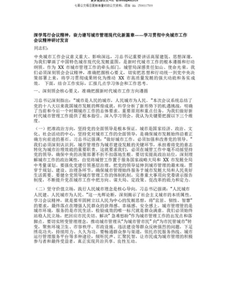 【七哥公文】2025年:【七哥公文】深学笃行会议精神,奋力谱写城市管理现代化新篇章——学习贯彻中央城市工作会议精神研讨发言+更多免费公文+VX:QiGeGongWen2024+更多免费公文+VX:QiGeGongWen2024