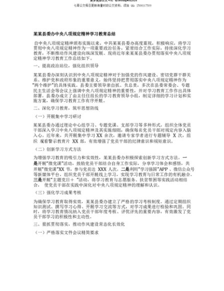 【七哥公文】2025年:【七哥公文】某某县委办中央BXGD精神学习教育总结+更多免费公文+VX:QiGeGongWen2024+更多免费公文+VX:QiGeGongWen2024