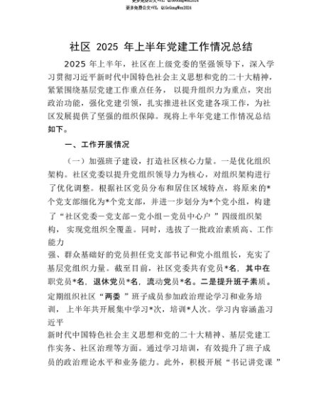 【七哥公文】2025年:【七哥公文】社区2025年上半年X建工作情况总结+更多免费公文+VX:QiGeGongWen2024+更多免费公文+VX:QiGeGongWen2024
