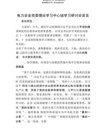 【七哥公文】2025年:【七哥公文】电力企业X委理论学习中心组学习研讨会发言+更多免费公文+VX:QiGeGongWen2024+更多免费公文+VX:QiGeGongWen2024
