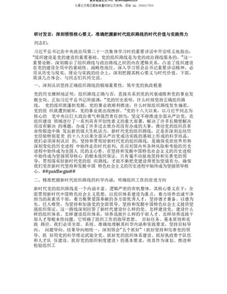 【七哥公文】2025年:【七哥公文】研讨发言:深刻领悟核心要义,准确把握新时代组织路线的时代价值与实践伟力+更多免费公文+VX:QiGeGongWen2024+更多免费公文+VX:QiGeGongWen2024
