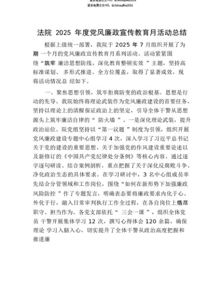 【七哥公文】2025年:【七哥公文】法院2025年度X风廉政宣传教育月活动总结+更多免费公文+VX:QiGeGongWen2024+更多免费公文+VX:QiGeGongWen2024